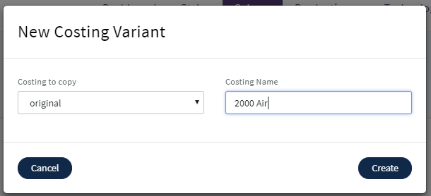 Choose the "Costing to copy" from the drop-down selector, and enter a 'Costing name' for the new variant.
