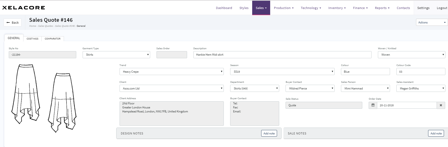 A sales quote is created you are taken to the 'General' tab where you update the client details and other key information.